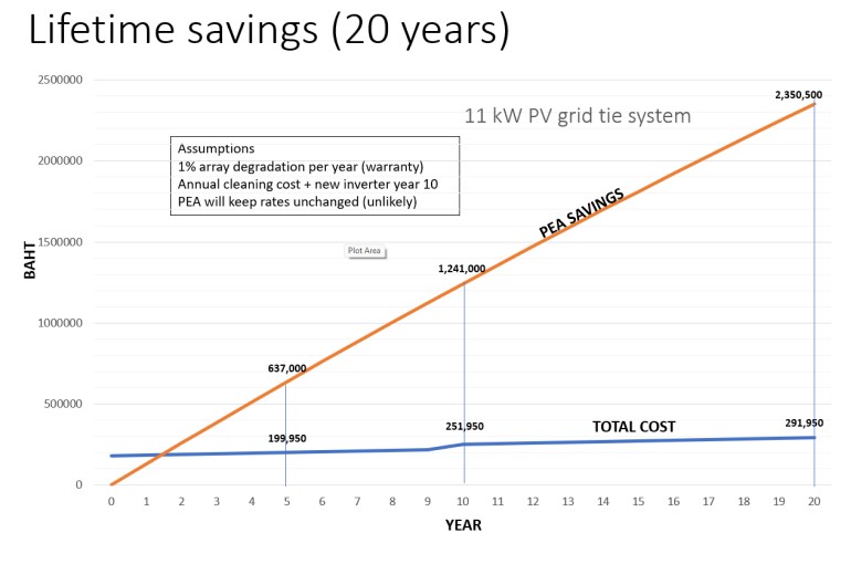 This system can supply your daytime usage and feed back excess power to PEA . Depending on your meter type, you can receive a 100% credit from PEA for excess power sent to PEA.