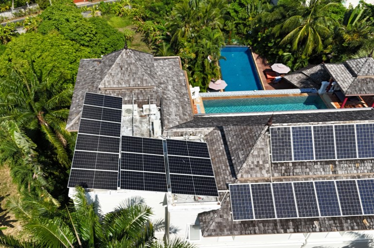 High power solar cell electrical system for large power hungry residences, medium businesses, and smaller hotels with signicant power usage. Typical usage PEA bill 25,000-60,000 per month.In typical usage, this system will pay for itself in 15 months, with free electricity thereafter for 30 years (warranty)