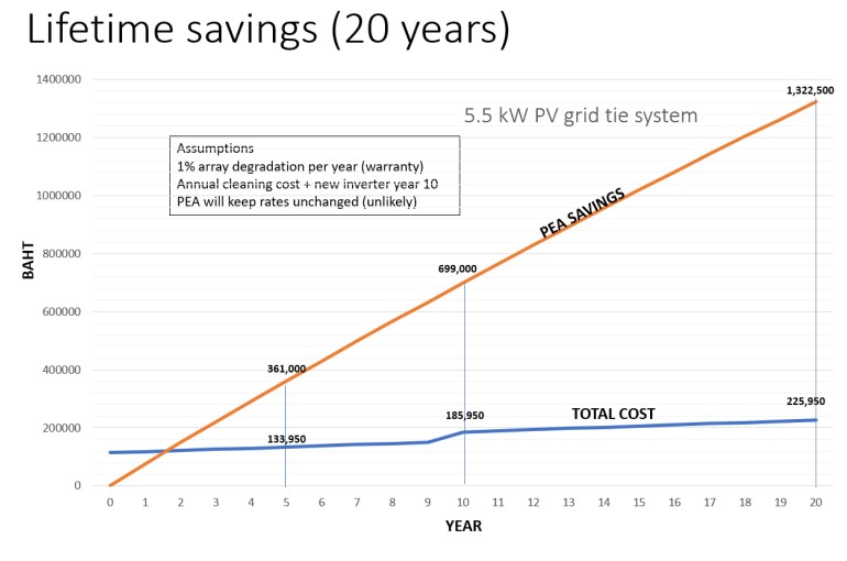 This system can supply your daytime usage and feed back excess power to PEA . Depending on your meter type, you can receive a 100% credit from PEA for excess power sent to PEA.